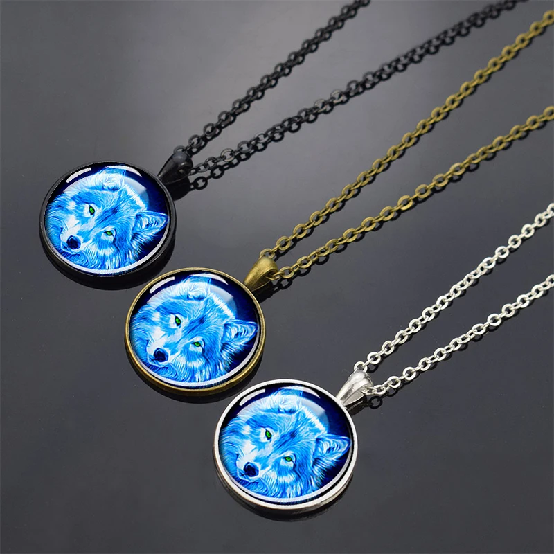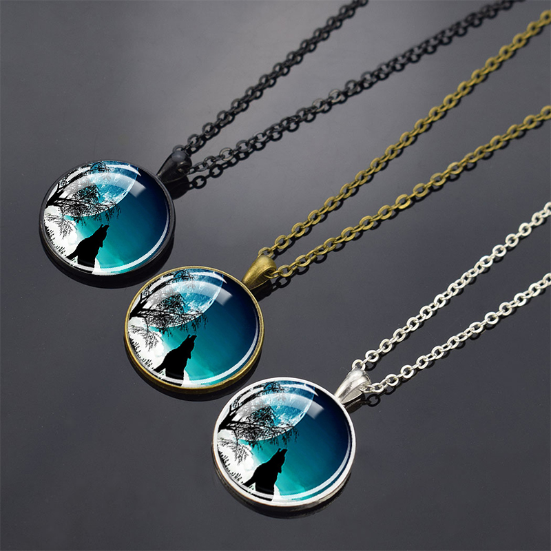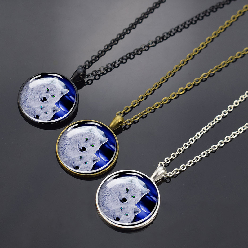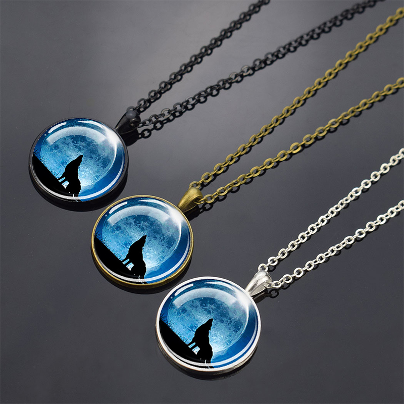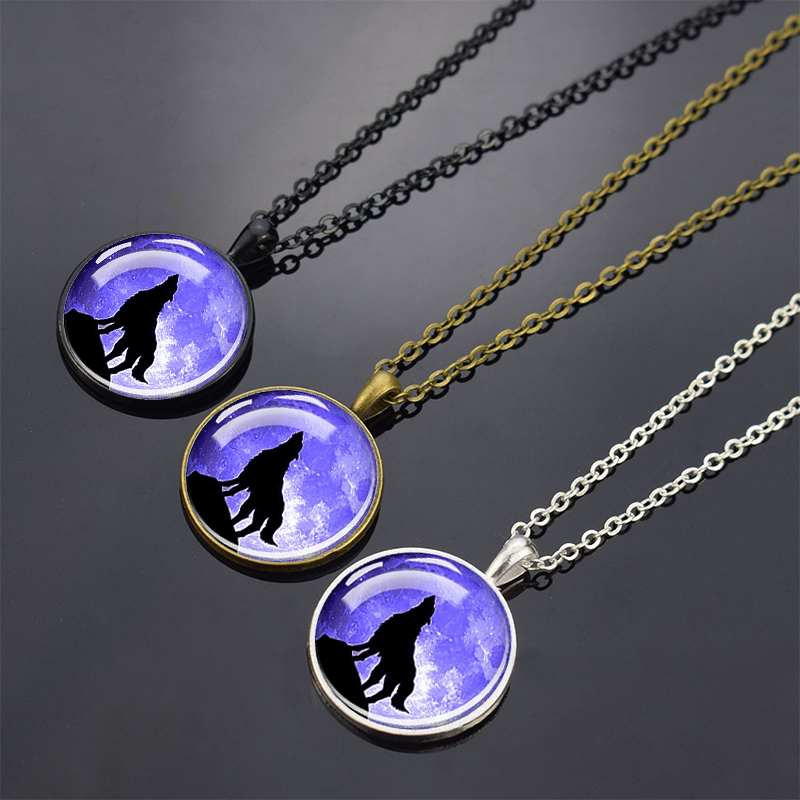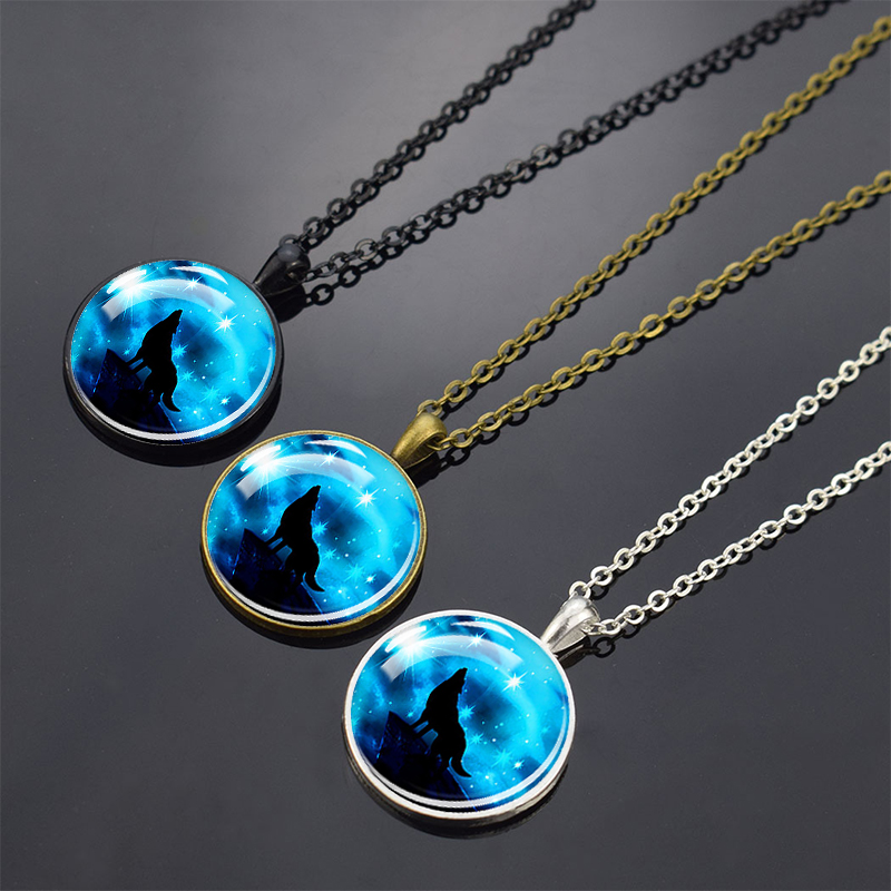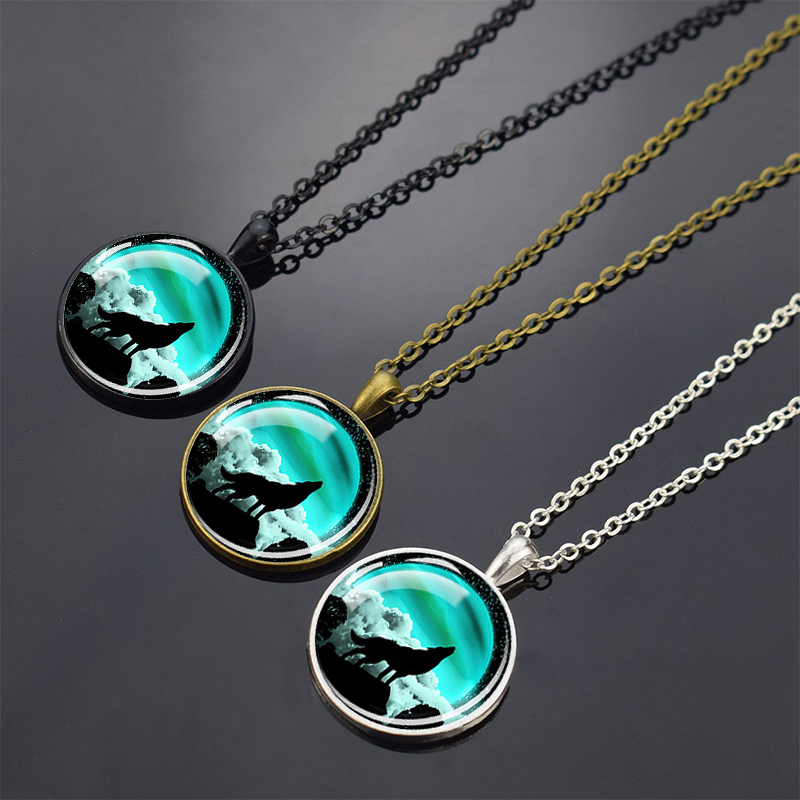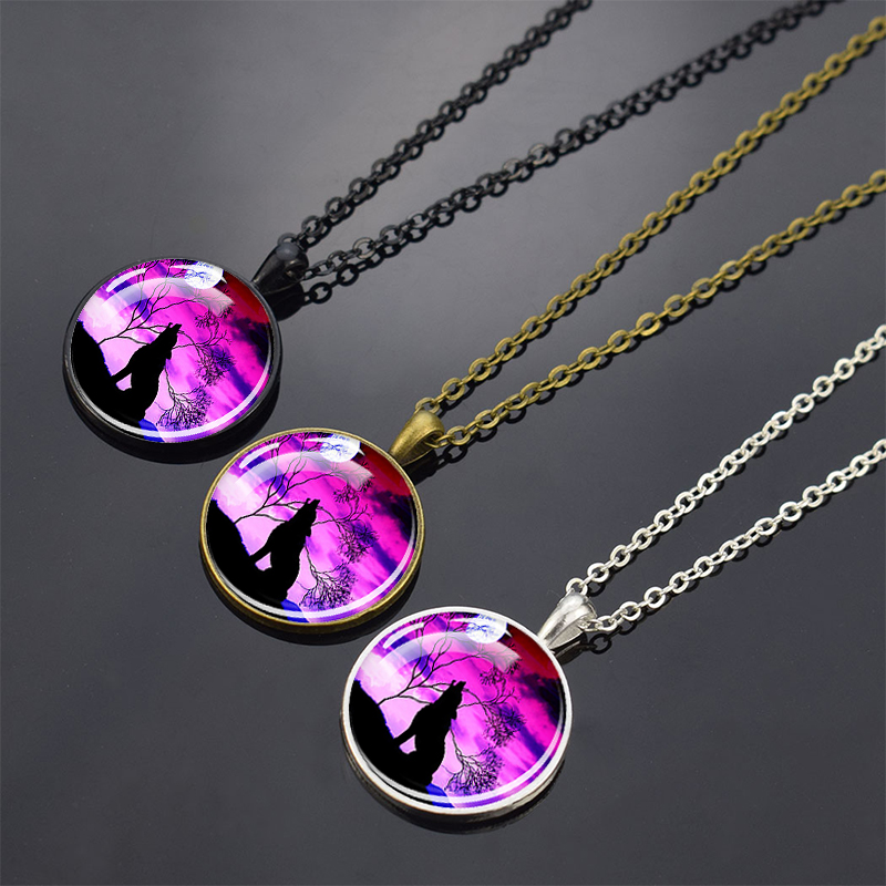 Wolf Pendant Necklace Black Chain Glass Crystal Pendant