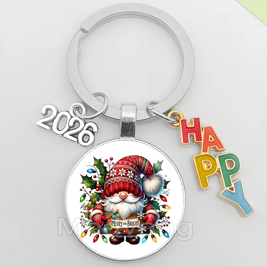 2026 Happy Christmas Keychain Santa Claus Happy New Year Gift Keyring Christmas