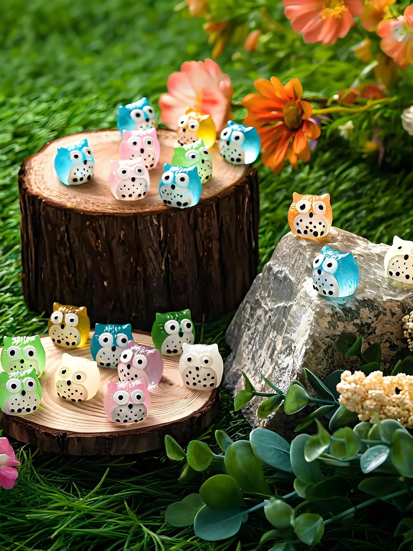 Glow In The Dark Owls Figurines 5/10PCS Luminous Mini Resin Decor