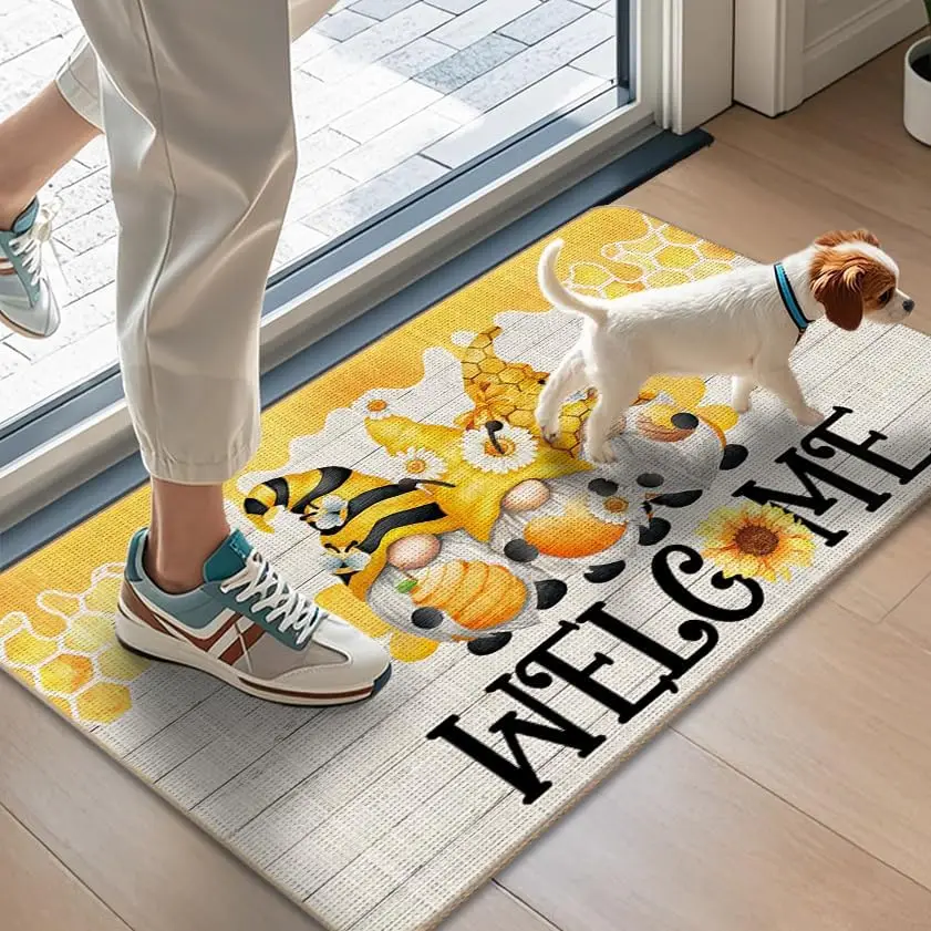 Gnome Sunflower Welcome Door Mat Spring Summer Yellow Floral Doormat