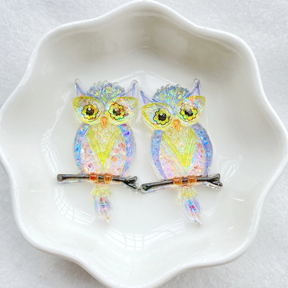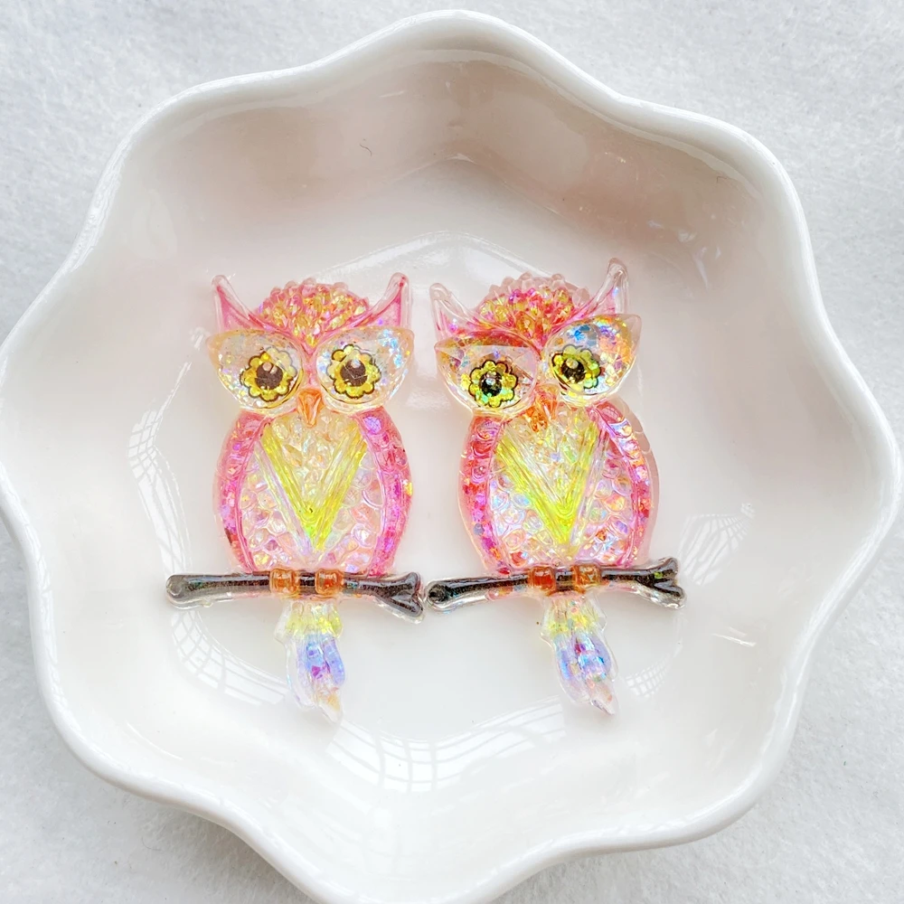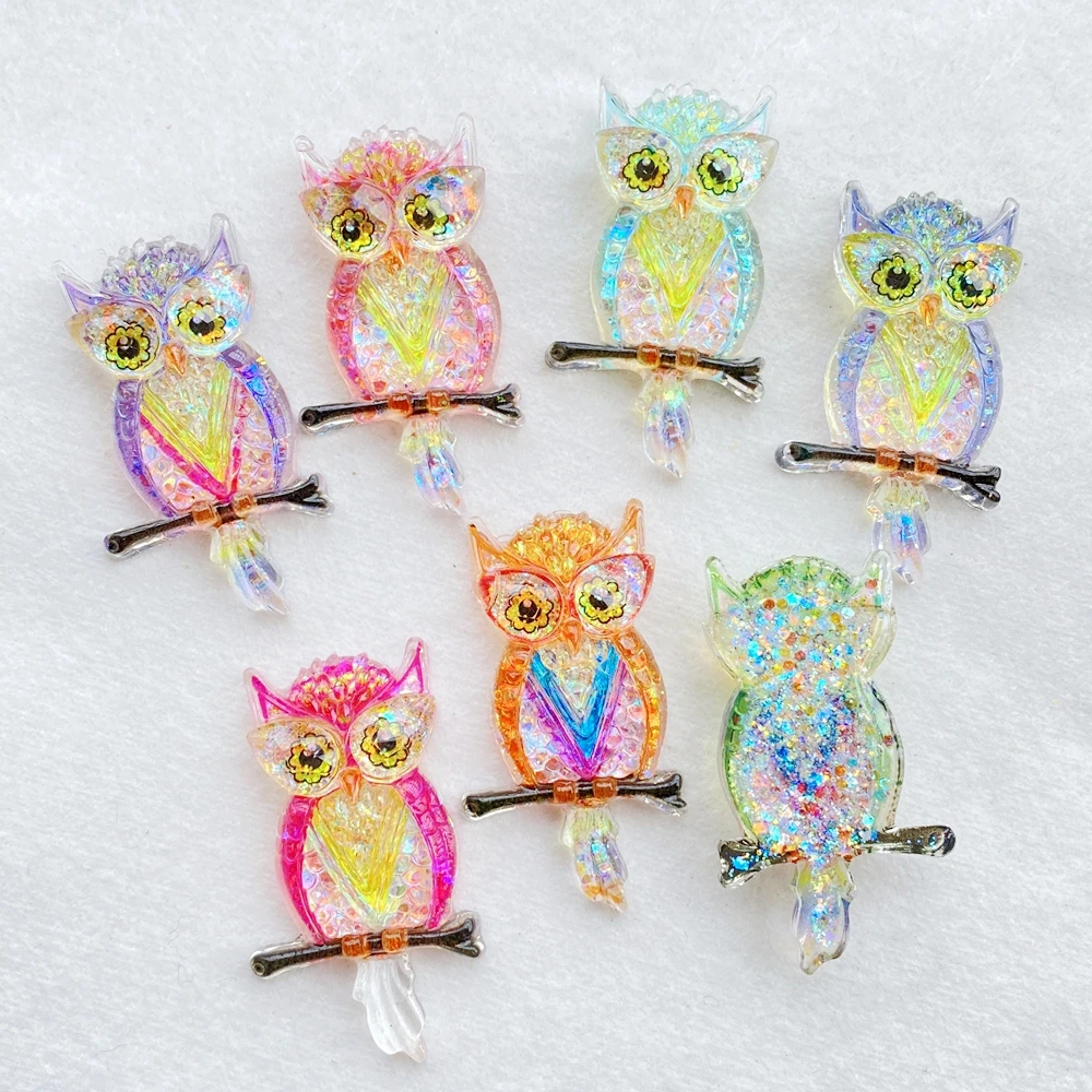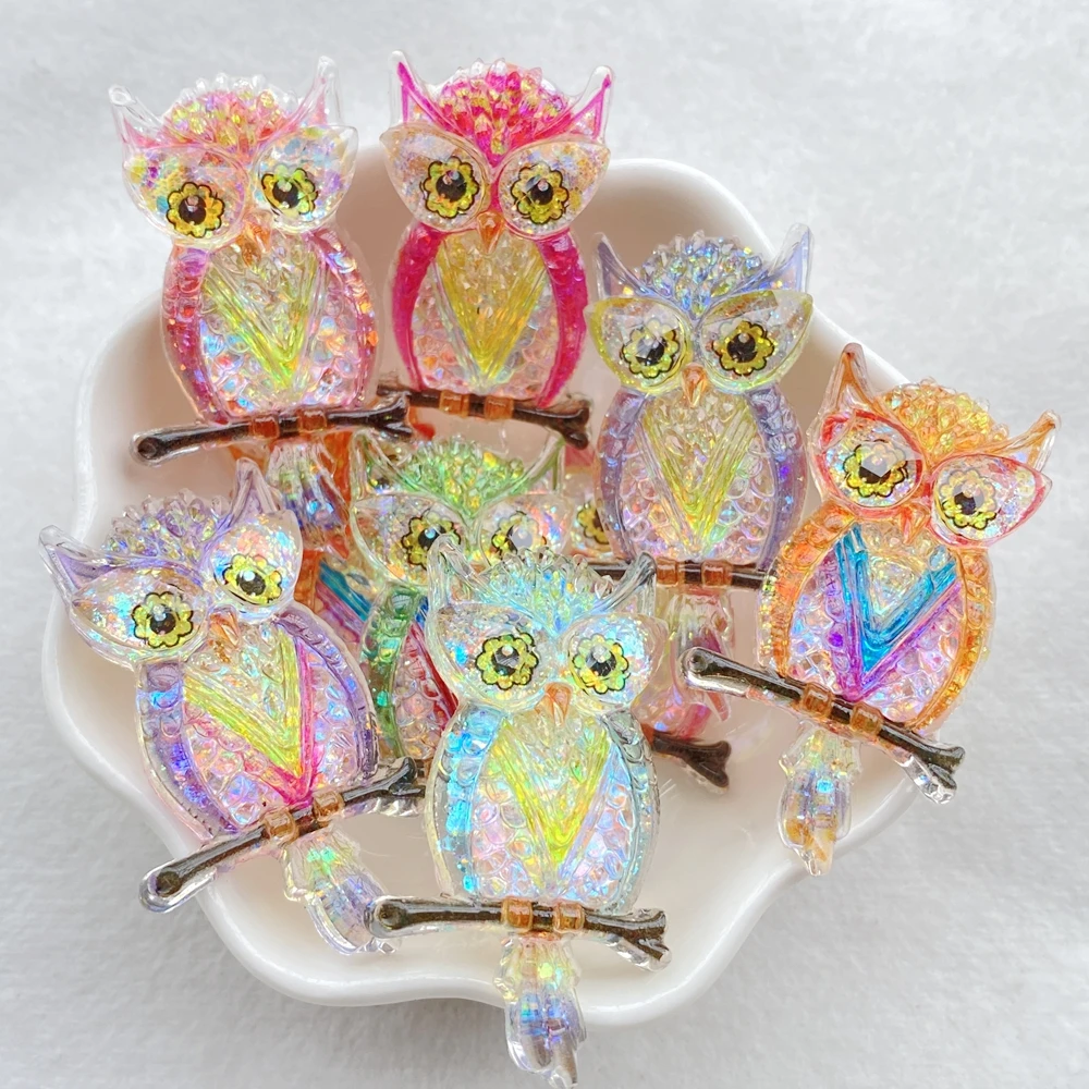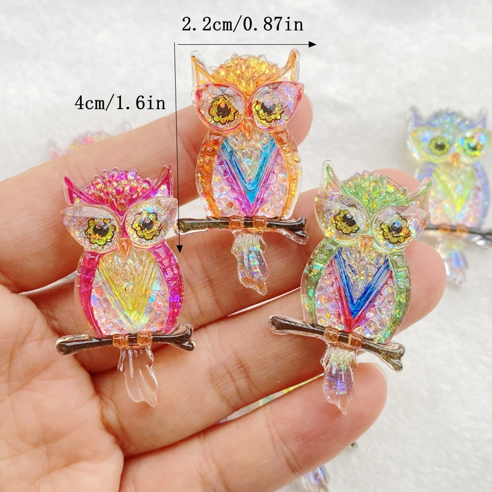6Pcs New Cute Cartoon Owl Resin Scrapbook Diy Jewelry Hairpin Phone Case Accessories