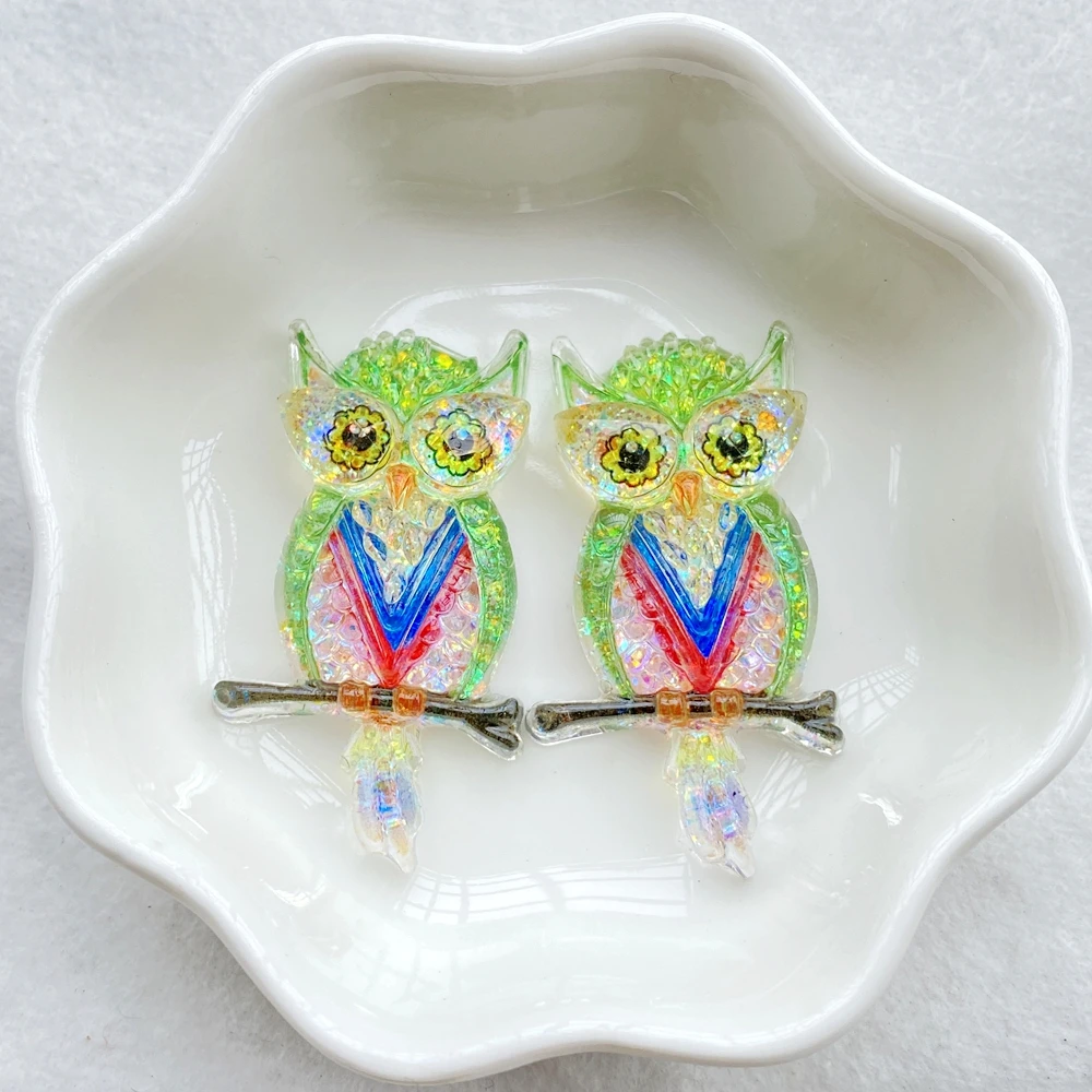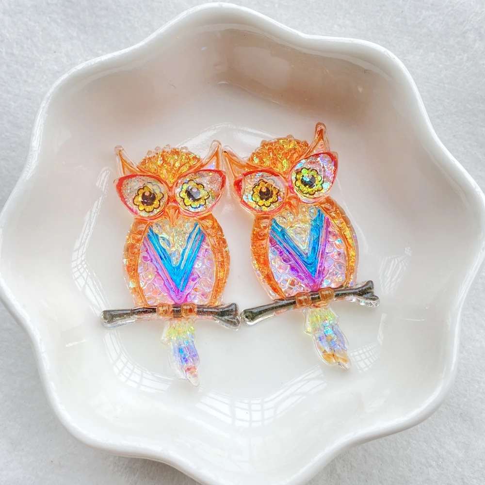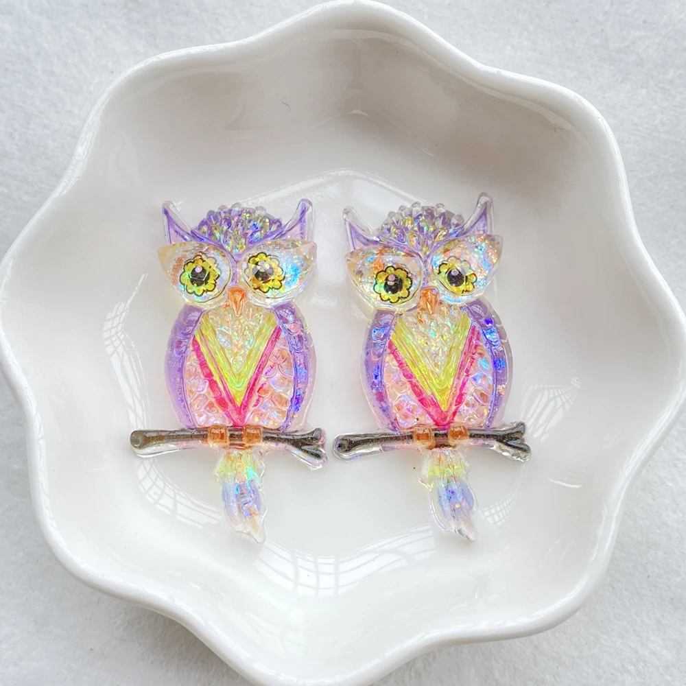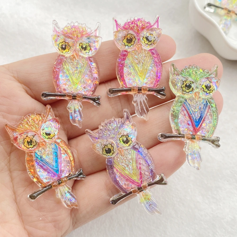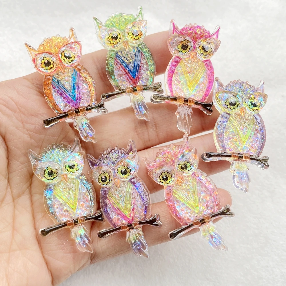 6Pcs New Cute Cartoon Owl Resin Scrapbook Diy Jewelry Hairpin Phone Case Accessories
