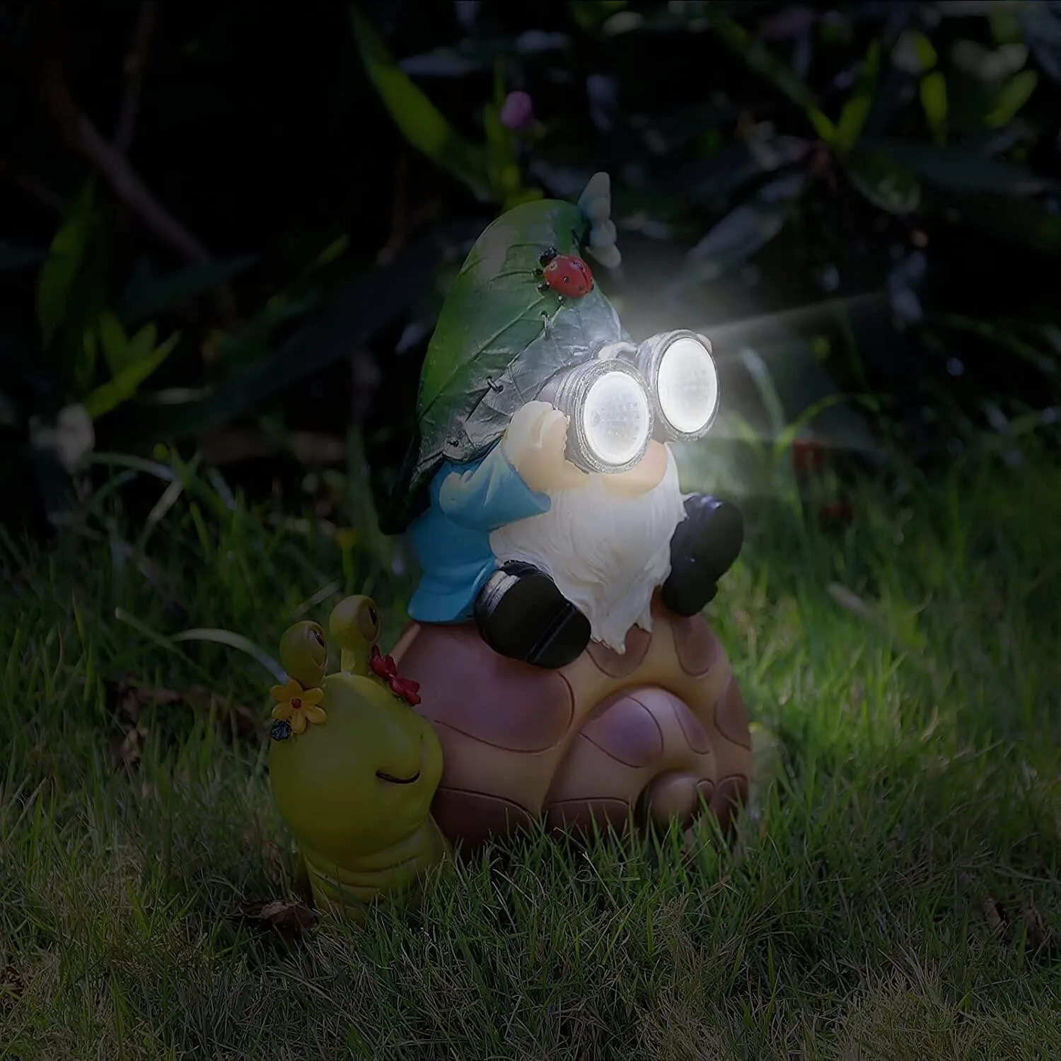 Resin Garden Gnome Snail Statue Decor with Solar Lights Gnomes