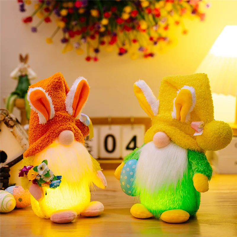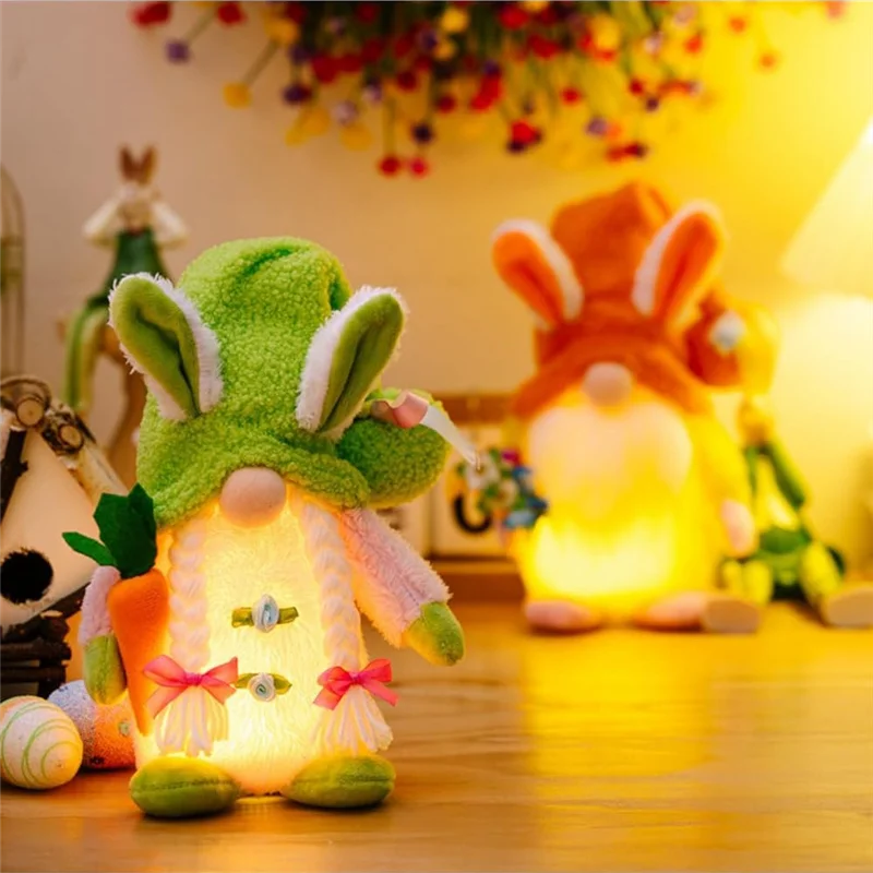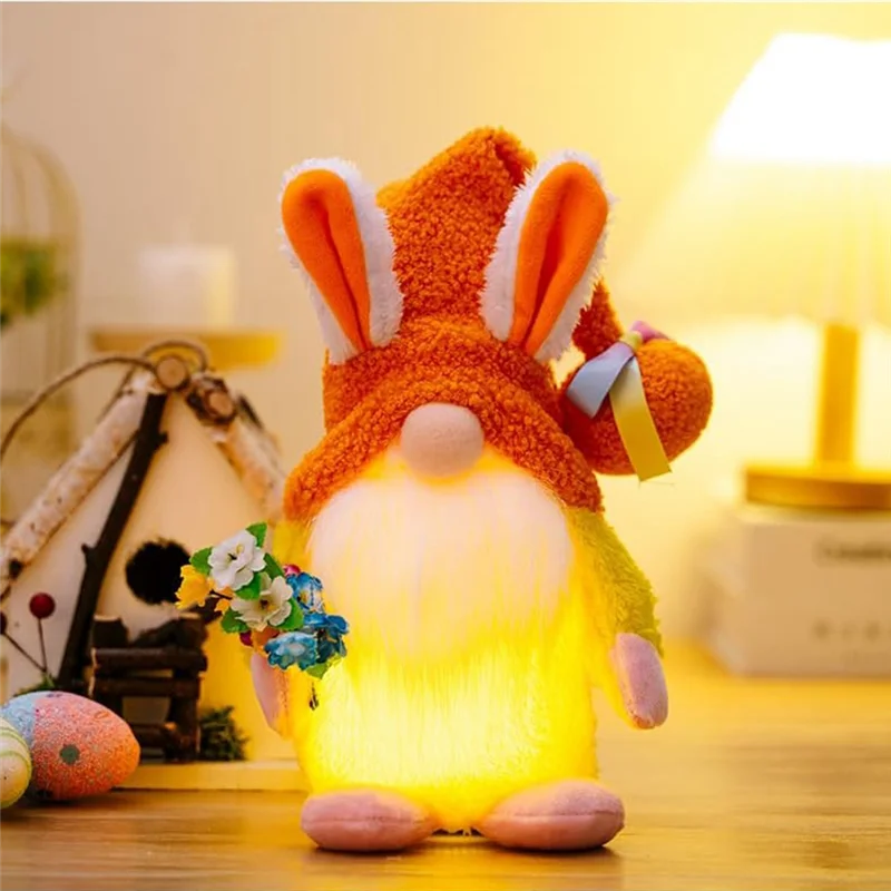 Perfect Easter and Spring Decorations / Decor ! These little light up Gnomes are perfect Easter and Spring Decorations for your home or office! They are made of high quality plush, with a built-in LED light that creates a warm and festive atmosphere.